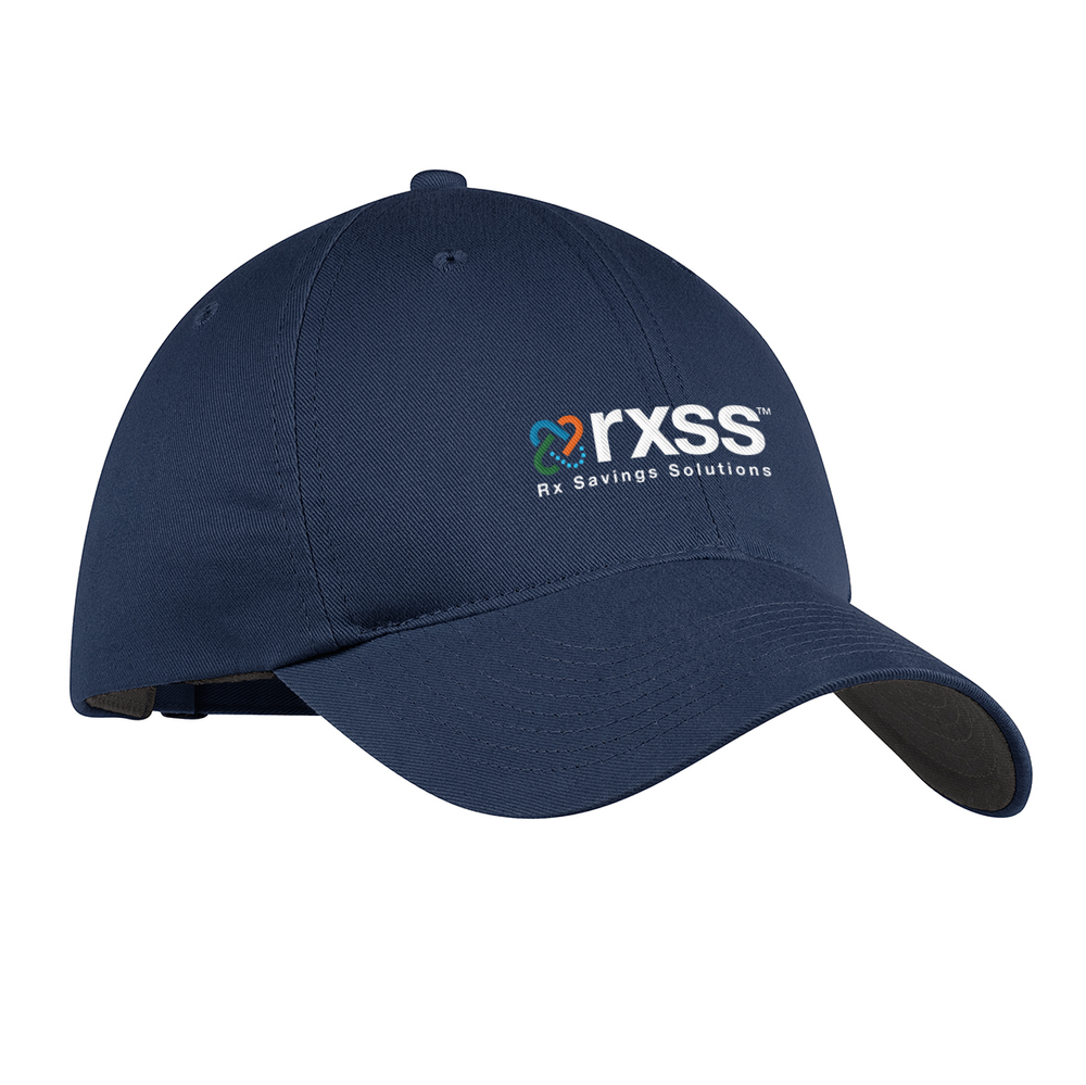 sku: RX-HR15The perfect classic look with a contrast under-bill as engineered by Nike. This cap has an unstructured, mid-profile design and a self-fabric closure with buckle. The contrast Swoosh design trademark is embroidered on the center back. Made of 58/42 cotton/poly twill. Sizing is one size fits all. Navy hat with full-color embroidery.